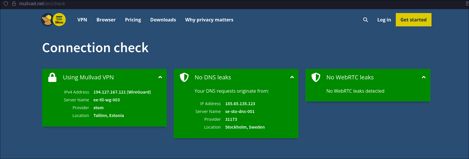 NetBirdi exit node väljub internetti läbi Mullvad VPN-i.