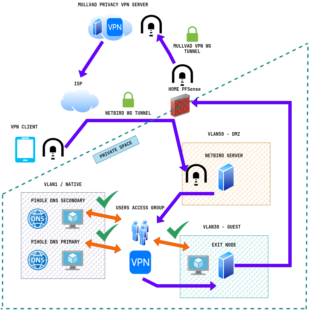 Esimene disainiotsus, mille tegin, oli see, et privacy VPN tunnel jookseb minu koduses pfSense tulemüüris, mitte üksikutes seadmetes.